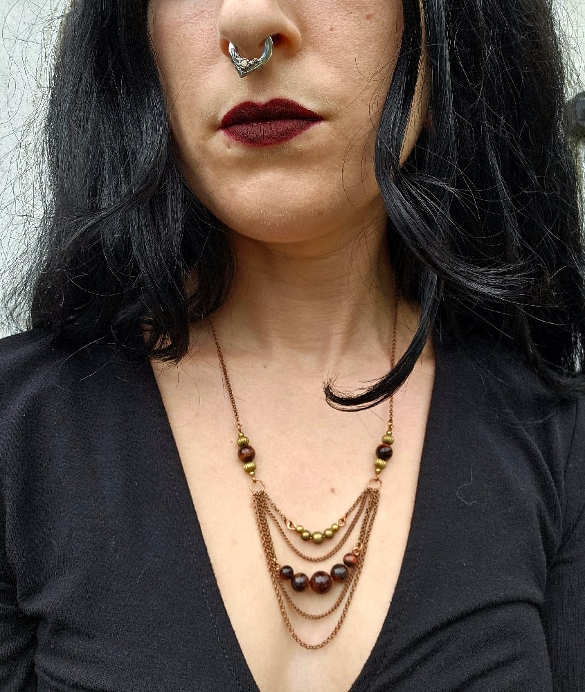 This simpler copper chain necklace is featuring Red Tiger Eye and copper beads.